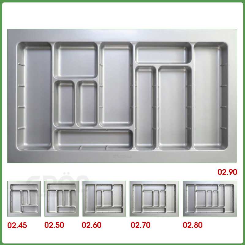 Tùy vào nhu cầu sử dụng và kích thước của từng căn bếp sẽ có nhiều kích thước Khay chia nhựa khác nhau. Mọi thông tin về sản phẩm được thể hiện rõ qua bảng sau: